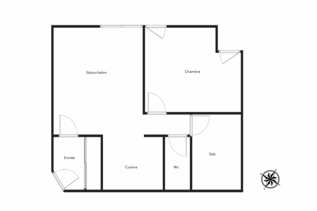 Agencement optimisé comprenant une entrée avec placard, un séjour lumineux avec cuisine ouverte aménagée et équipée, une chambre confortable, une salle d’eau ainsi qu’un WC séparé.