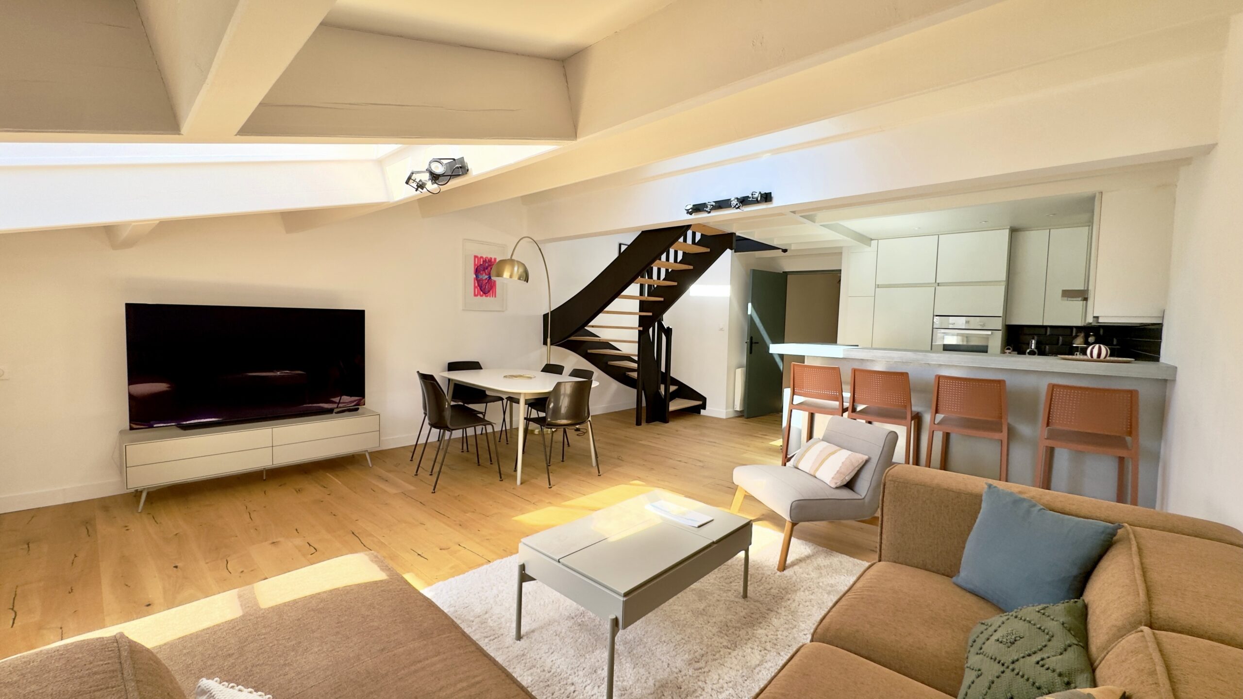 L’appartement est en parfait état, avec des prestations modernes et une décoration chaleureuse, reflétant un goût contemporain.