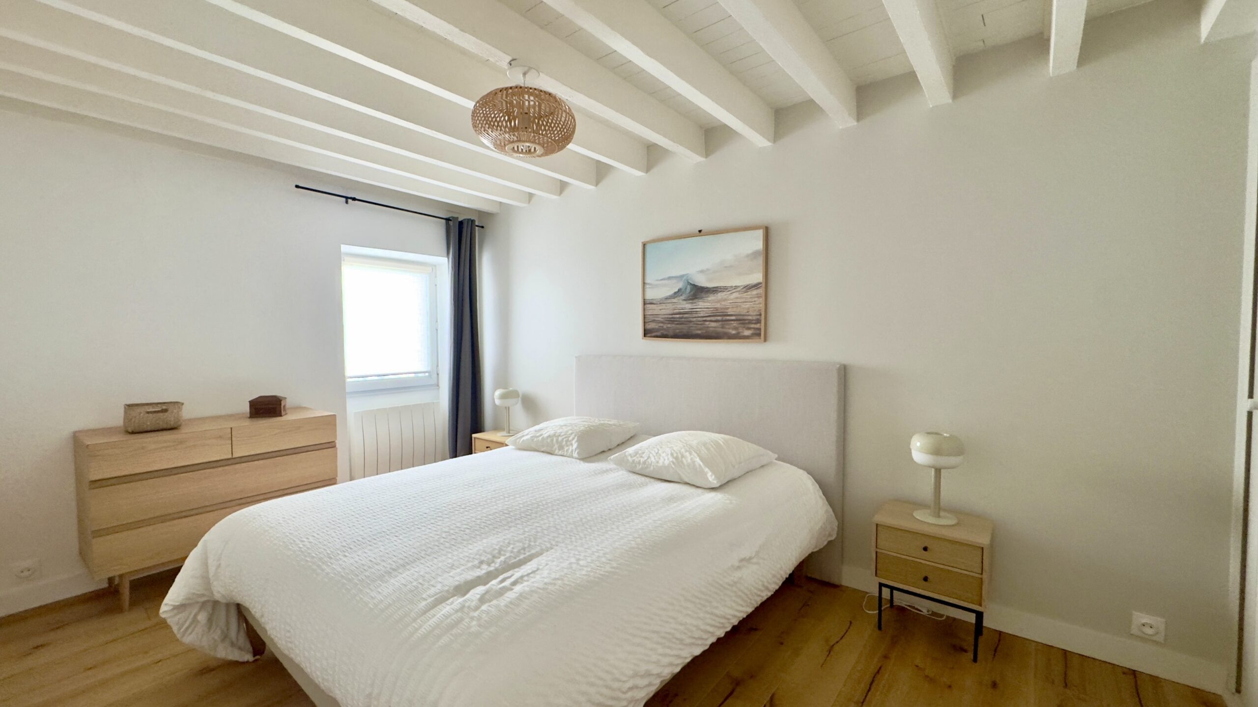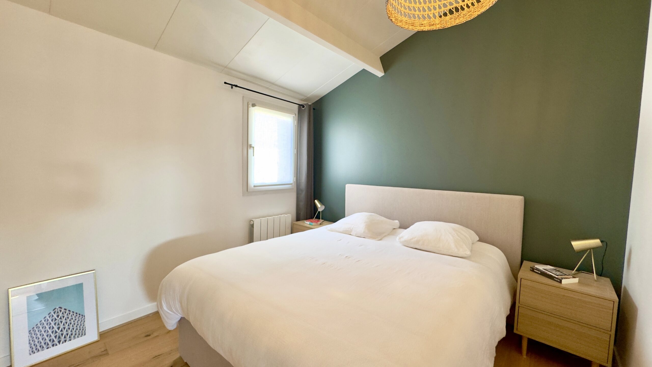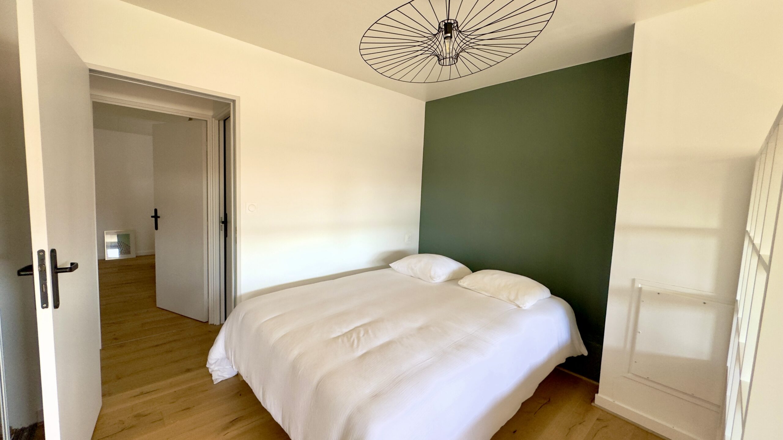 À l’étage, un grand palier distribue une seconde chambre, avec la possibilité d’aménager un coin bureau en troisième chambre.